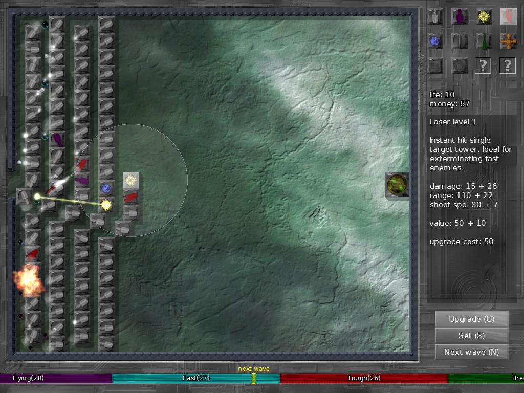 Tower defense style game made in 1 week for competition. Code, graphics(Blender/Gimp) and sounds(Audacity) made by myself.
